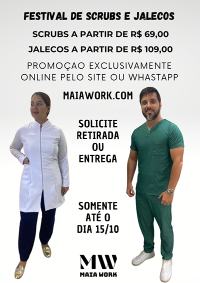 Scrub Fernanda é confeccionado em tecido microfibra com elastano.